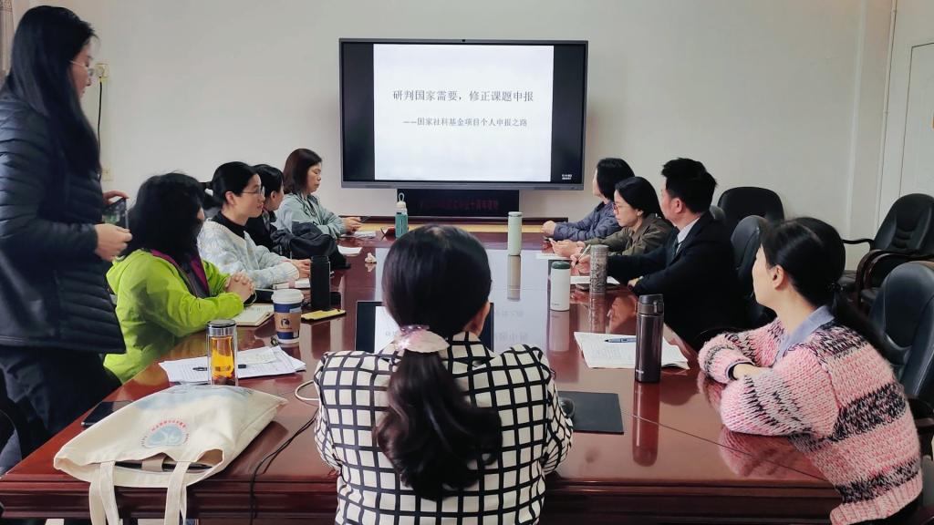 4月7日下午,外语楼216会议室,谈球吧经理舒奇志教授主持公司“文化理论与跨文化传播研究”团队“项目申报交流会”,并以“研判国家需要,修正课题申报——国家社科基金项目个人申报之路”为题作详细报告。