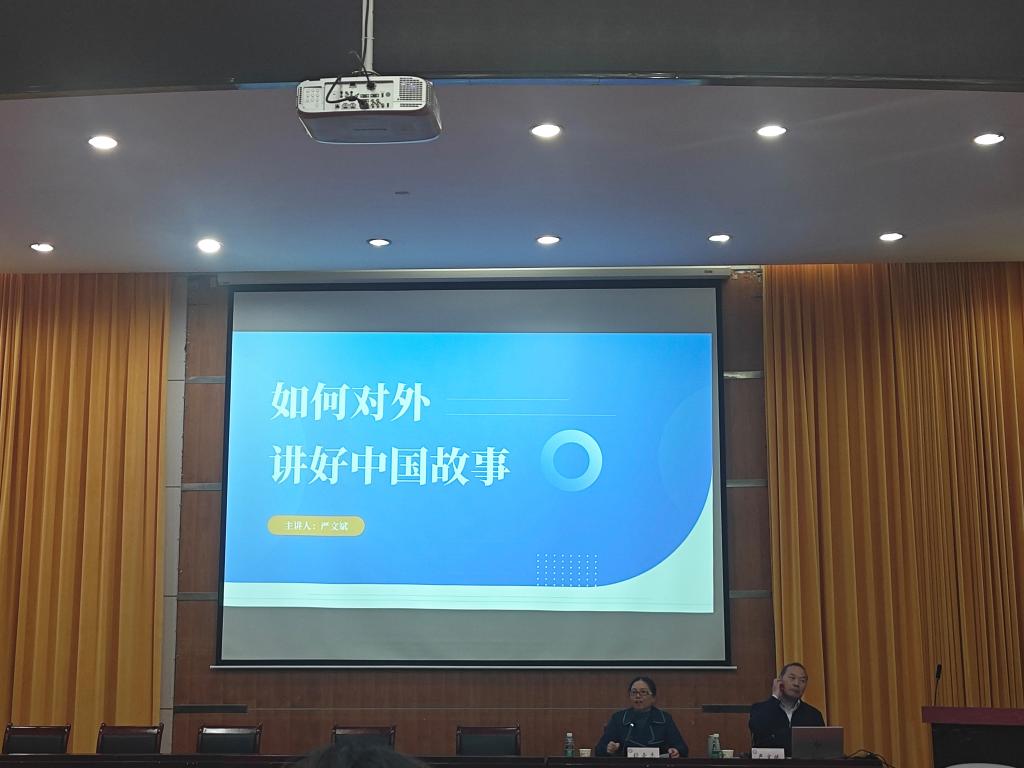 3月22日下午两点,著名国际传播与国际问题专家,高级编辑,国务院政府津贴专家,国家社科基金评审专家,中宣部文化名家与“四个一批”人才,国家新闻出版领军人才,新华通讯社原副社长严文斌员工应邀在逸夫楼第一报告厅为公司师生作题为“如何对外讲好中国故事?”的学术讲座。讲座由舒奇志经理主持,刘行副书记等公司领导及各系老师、研究生及本科生参加。