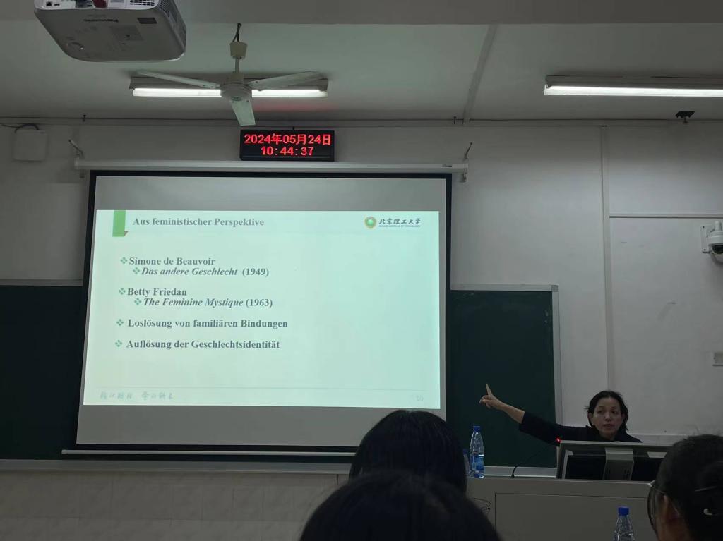 2024年5月24日,谈球吧德语国家级一流专业建设点系列报告在外语楼206顺利举行。北京理工大学谈球吧德语系教授,教育部高等公司外国语言文学类专业指导委员会德语分委员,中国德语文学研究会理事刘文杰教授主讲《隐墙内外的世界——现代文明、末日图景与女性视角》。教授曹霞担任此次主持人。德语系全体师生参加了本次报告。