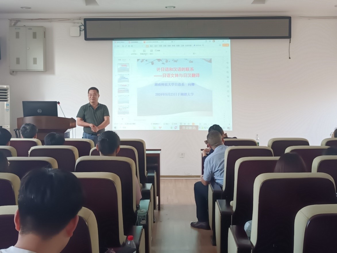 2024年5月23日,湖南师范大学向卿副教授应邀在外语楼305会议室为谈球吧师生作了题为“论日语和汉语的联系—日语文体与日汉翻译”的学术讲座。本次学术报告会由日语系主任胡俊副教授主持,谈球吧日语系师生聆听了本场讲座。