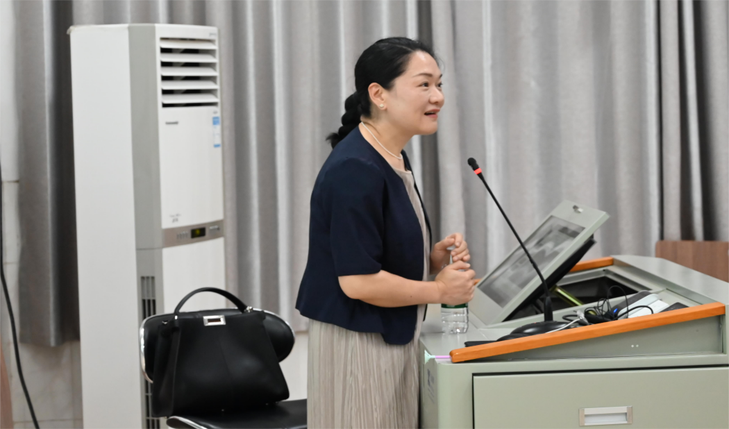 讲座开始后,杨柳博士首先从日语语法教学的性质、目标以及内容三个方面进行了讲解,让师生们对其基本情况有了一定的了解。随后,杨柳博士生动形象地向师生们展示了教学过程中正确恰当的仪表仪态和语言表达。在风趣幽默的氛围下,引入了本次讲座的正题。