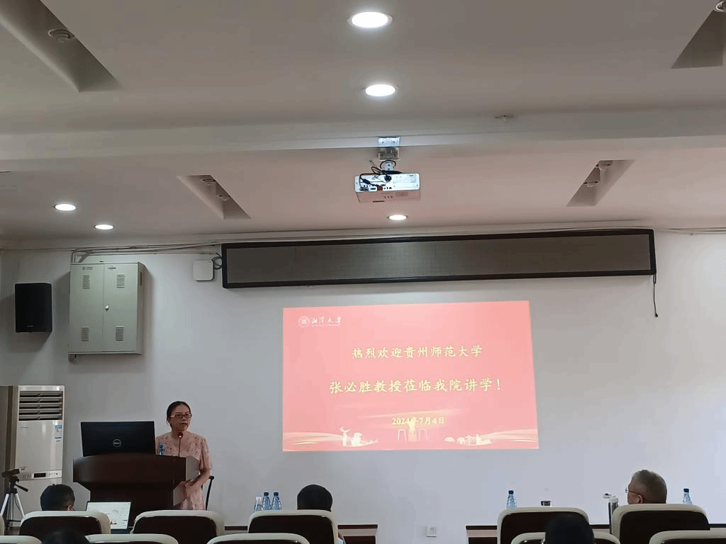 7月4日下午,贵州师范大学的张必胜教授应邀在外语楼305为公司的老师们作了题为“跨学科视域下的人文社科研究”的学术讲座。 讲座由舒奇志经理主持,杨维春副经理等谈球吧各系老师参加了此次讲座。