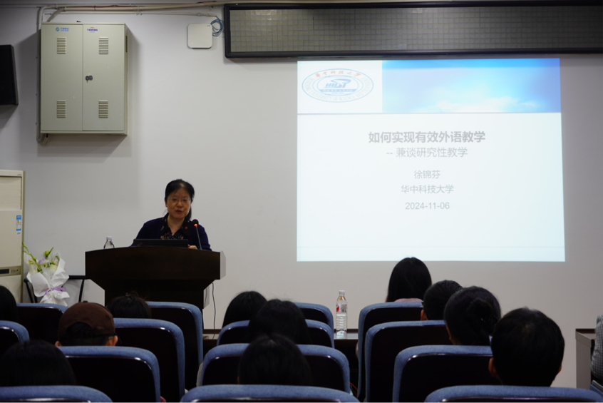 2024年11月6日晚,华中师范大学教授徐锦芬应邀为公司师生带来了一场题为“如何实现有效外语教学:兼谈研究性教学”的教学“思享会”。此讲座在外语楼305报告厅举行,文卫平教授担任主持人,吸引了众多教师及研究生的热情参与,现场座无虚席,学术氛围浓厚。