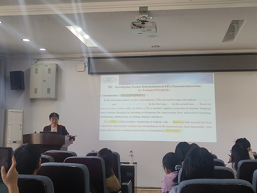 讲座中,徐教授通过具体例子,详细讲解了如何引出要论证的主题,并强调文献综述不仅要点评已有研究,指出其不足,还要写出该研究的重要性,以及善于使用专家的话语来支撑研究,使论证有理有据,论证充分,环环相扣。这一环节不仅展示了徐教授对学术前沿的敏锐洞察,也为在场师生提供了宝贵的研究思路。