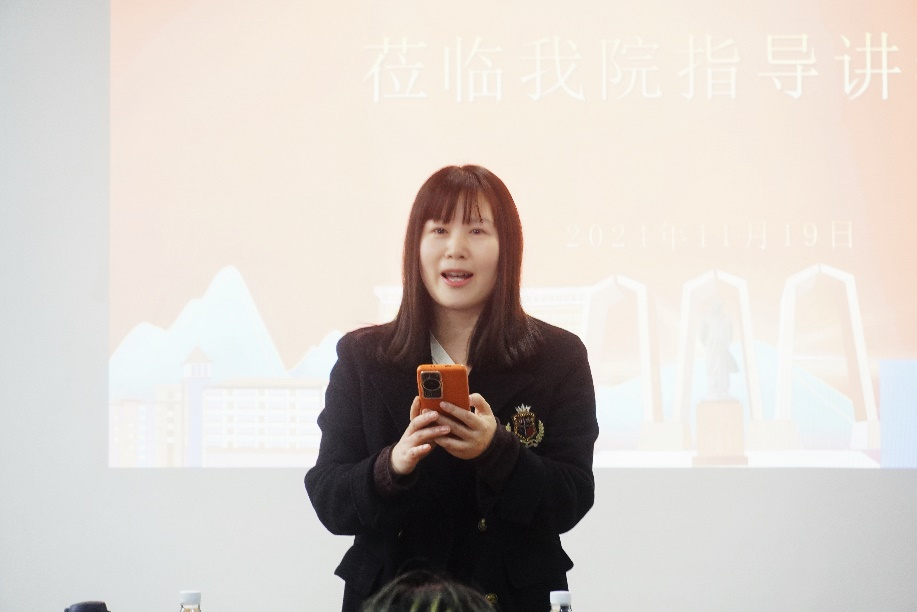 主持人刘海燕老师对黄教授的到来表示了热烈欢迎与真诚的感谢,认为该讲座围绕史蒂文斯诗歌中的乐器书写、音符回旋、结构设计以及元诗艺术等特征,论析诗歌的跨媒介隐喻,揭示诗歌创作的跨媒介艺术特征,为解读现代派诗歌的当代性特征找到了一条新路径。