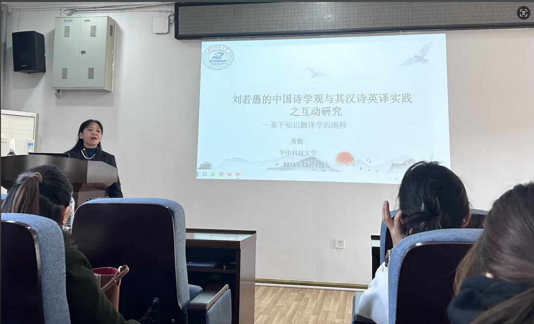 12月1日下午2:30,一场主题为“刘若愚的中国诗学观与其汉诗英译实践之互动研究”的学术报告会在外语楼305会议室举行。此次邀请到的主讲人为华中科技大学谈球吧教授、文学博士以及博士生导师黄勤。本次讲座由刘永利老师主持,吸引了众多对诗学翻译感兴趣的师生前来聆听。