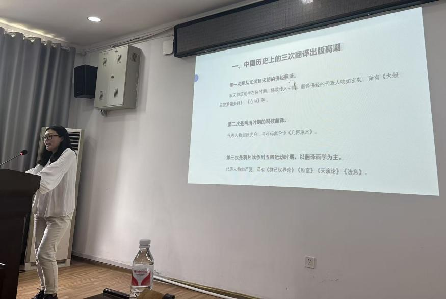 高老师首先从宏观历史视角切入,梳理了中国翻译出版的三次重要浪潮:1.佛经翻译(东汉至宋)2.科技翻译(明清)3.西学翻译(鸦片战争至五四运动)她指出,这三次翻译高潮为改革开放后的文化开放埋下伏笔。接着,她又结合具体案例,详细介绍了改革开放以后我过翻译出版的三个三站阶段:第一阶段是打开窗口阶段(1978-1988);第二阶段是整顿调整阶段(1989-1993);第三阶段是实施市场经济阶段(1994年以后)。