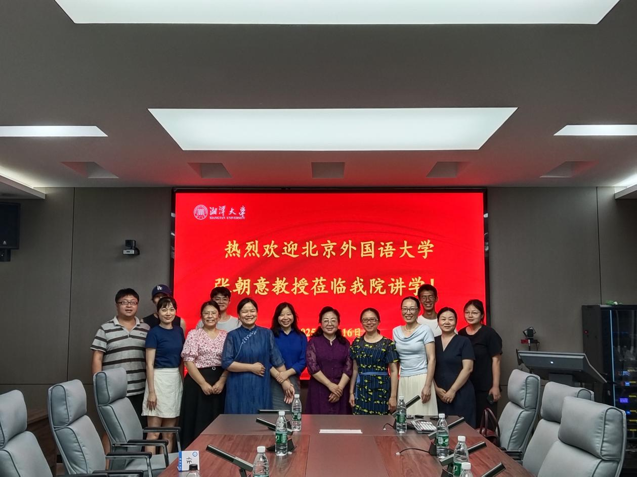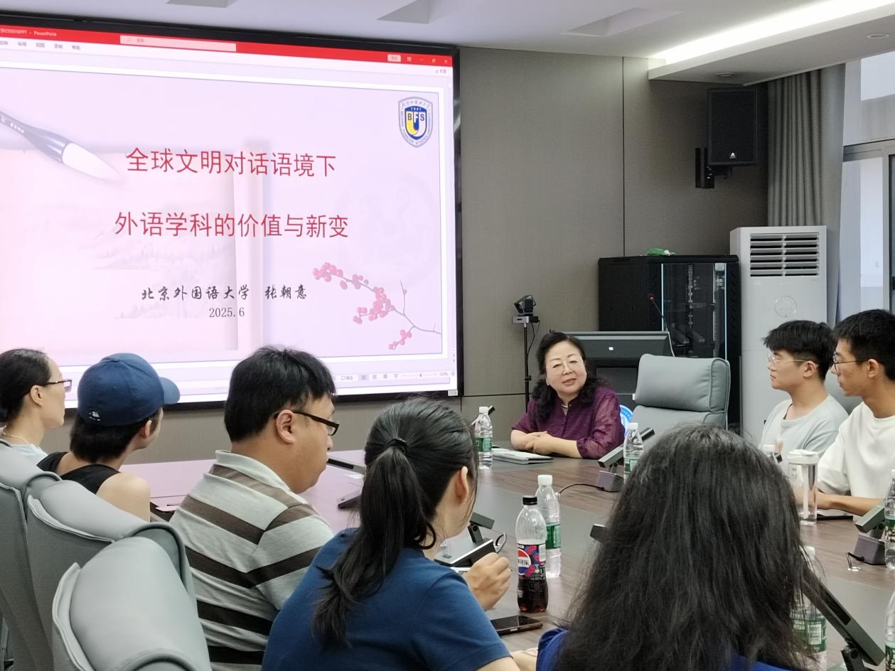 2025年6月16日,北京社科重点研究基地北京中外文化交流研究基地主任,中国国家版本馆首届专家委员会委员,《国际汉学》执行主编,北京外国语大学张朝意教授莅临公司讲学,为全院师生带来一场题为“全球文明对话视域下外语学科的价值与新变”的学术讲座,讲座由公司经理舒奇志教授主持,公司教师与研究生参加。