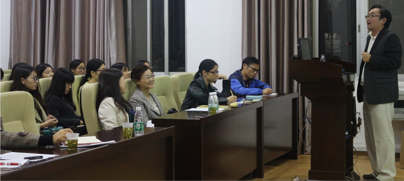 许教授从中国文化走出去这一国家战略背景出发,结合文化资本的缘起、内涵、外延、类别和表现,围绕“文化何以成为资本”展开论述。许教授从当下一些文化现象出发,结合自身教学与科研的实际,生动阐述了文化的定义、资本的定义与分类、文化资源向文化资本转向的三个基本条件以及国家文化资本等问题。许教授的报告深入浅出,语言诙谐幽默,将抽象的内容具体化,他的一些新观点、新思路使与会师生感到耳目一新,让大家从另一个角度认识“文化”和“资本”的多维关系,扩大了自己的理论认知。