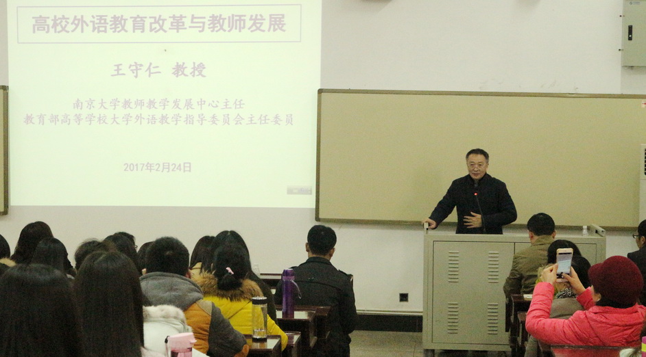 2月24日下午,教育部高等公司大学外语教学指导委员会主任委员、南京大学教师教学发展中心主任、博士生导师王守仁教授做客公司“韶风名家论坛”,在逸夫楼502教室作了一场题为《高校外语教育改革与教师发展》的精彩学术讲座。公司教务处处长喻祖国教授,谈球吧部分老师、研究生和本科生等百余人聆听了此次讲座,讲座由谈球吧经理胡强教授主持。