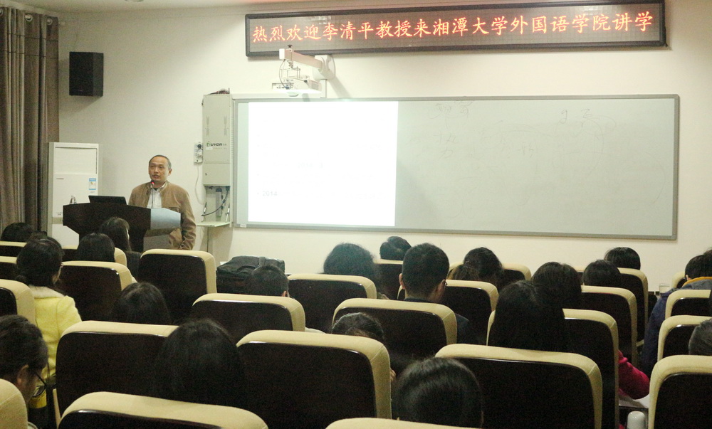 2016年11月1日,中南大学李清平教授应公司邀请在外语楼305教室为公司师生展开一场题为《语言学选题的跨学科视角》的专题讲座。讲座由胡强教授主持,部分青年教师以及研究生参加了此次讲座。