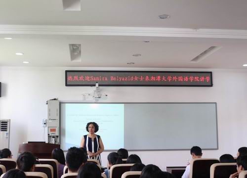 讲座前,公司党委书记胡强教授、国际交流公司经理曾新民教授、法语系全体教师等会见了Samira Belyazid教授,就国际学术交流、法语教学、语言学研究和科研前沿等问题进行了深入的交流和对话,取得了广泛的共识。