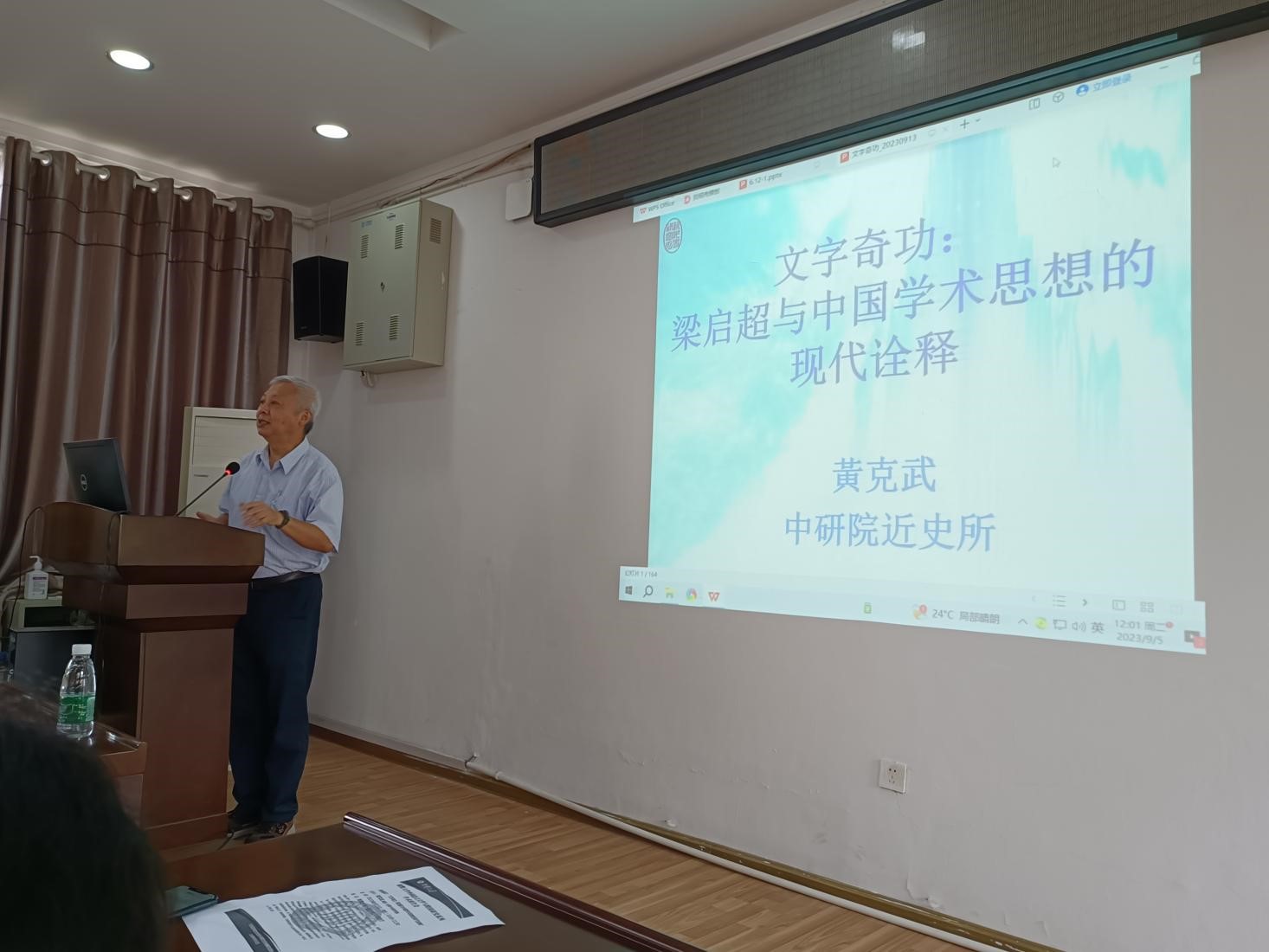 2023年9月15日上午,台湾中央研究院黄克武教授在外语楼305会议室作了一场题为“‘文字奇功’:梁启超与中国学术思想的现代诠释”的学术讲座。本次讲座由舒奇志经理主持,公司“文化理论与跨文化传播研究”团队老师,外国语言文学专业研究生和本科生,以及公司碧泉书院历史学专业师生现场聆听并参与交流。