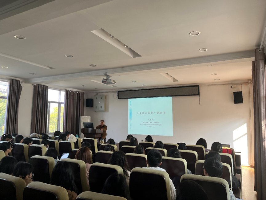 12月1日下午,清华大学首批二级教授,现任广西大学君武学者、讲席教授,外语公司经理,主要兼职有澳大利亚研究委员会(ARC)、(香港)大学教育资助委员会(UGC)人文艺术学部委员,英国Routledge出版社ESCI期刊Asia Pacific Translation and Intercultural Studies主编,中国作家协会会员罗选民教授应邀为公司师生做了题为“互文性与商务广告翻译”的讲座。本次讲座在外语楼305学术报告厅举行,由胡强教授主持,公司师生参加了此次讲座。