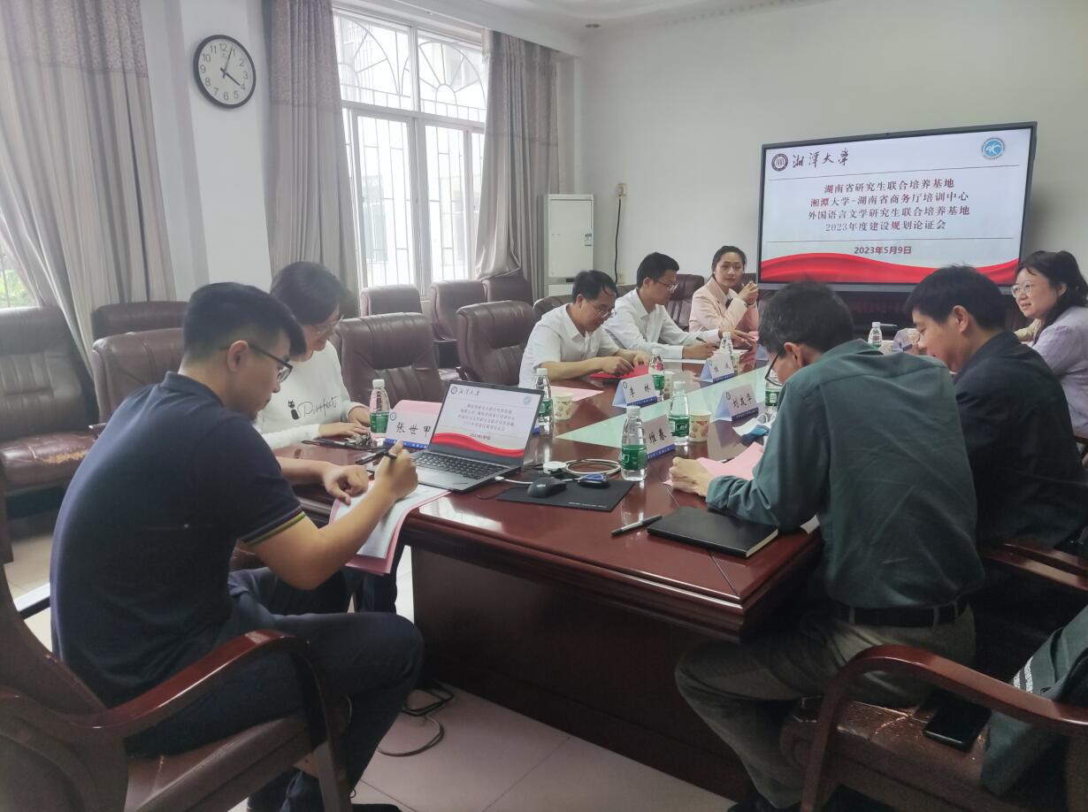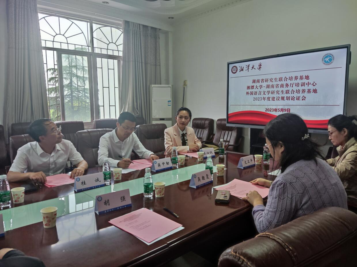5月9日下午,公司在216会议室召开谈球吧-湖南省商务厅培训中心外国语言文学研究生联合培养基地2023年度建设规划论证会。论证会由谈球吧副经理曹霞教授主持,湖南省商务厅培训中心主任桂诚教授、大公网湖南频道李林总编辑、公司研究生院经理胡强教授、谈球吧技术转移中心主任刘友华教授、谈球吧商公司吴朝霞教授、谈球吧文卫平教授等专家参与论证。