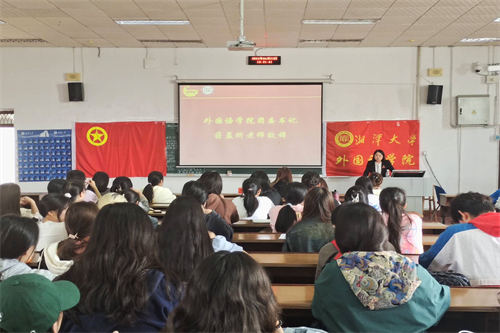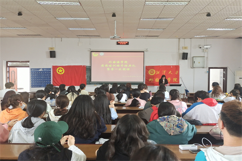 蒋孟昕为全体学员进行第一次授课,她以“以史为鉴,开创未来,做新时代合格外语人”为主题,带领学员们重温百年团史。她希望学员们自觉用习近平新时代中国特色社会主义思想武装头脑,强化使命担当,练就过硬本领,讲好中国故事,做有家国情怀、全球视野、专业本领的复合型人才。