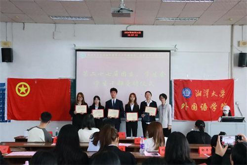 随后,第二十七届团委第一副书记杨凯雯主持新一届谈球吧团委、员工会成立大会,刘行宣读第二十七届团委、员工会员工干部名单,刘行为新一届主席团颁发聘书,蒋孟昕为新一届负责人颁发聘书。