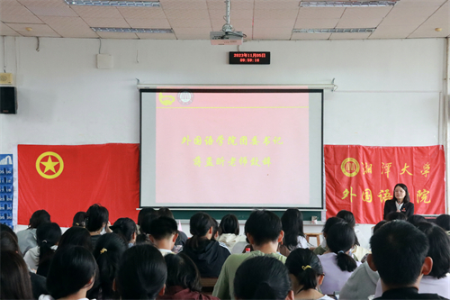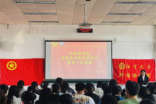 蒋孟昕为全体学员进行第一次授课。她以“以史为鉴,开创未来,做新时代合格外语人”为主题,带领学员们重温百年团史。她希望学员们自觉用习近平新时代中国特色社会主义思想武装头脑,强化使命担当,练就过硬本领,讲好中国故事,做有家国情怀、有全球视野、有专业本领的复合型人才。