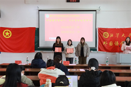 会议伊始,团委副书记刘付琦对十二月份团委、员工会的工作进行了总结。组织部、成长辅导部获得十二月份“优秀部门”称号,员工会执行主席李易航为其颁发证书。2021级英语3班和2023级英语2班获得“优秀班级”称号,刘付琦为其颁发证书。2021级英语3班班长刘征和2023级英语2班班长张睿熙就各自班级的思想建设、活动开展以及未来规划等方面进行了经验介绍。李易航对团委、员工会一月份工作作了计划部署。