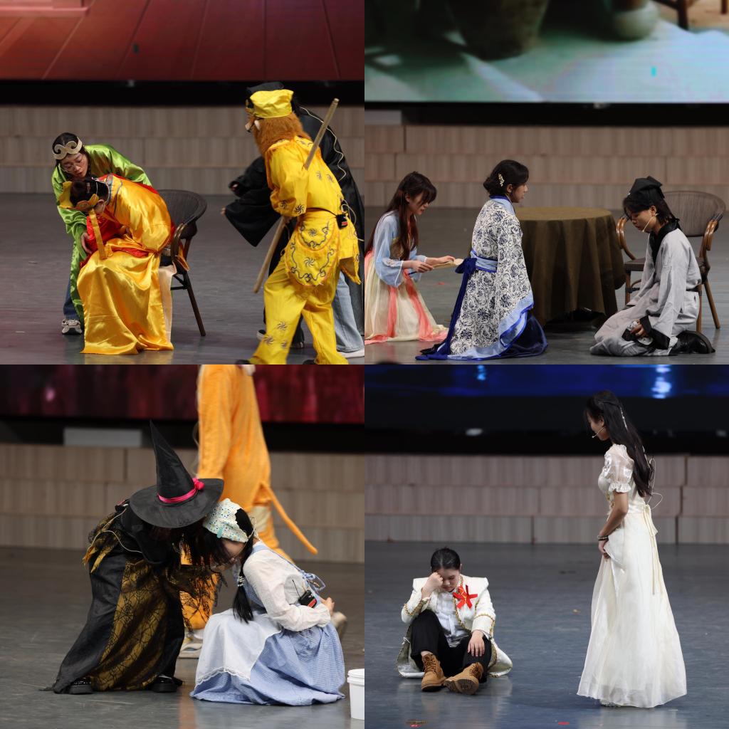 《仲夏夜之梦》中赫米娅的悲情独白拉开展演序幕,有情人终成眷属的美好结局感动了所有观众。《西游记:女儿国》师徒四人的出场引发了观众席的欢呼与爆笑。《梁山伯与祝英台》带领观众进入他们的南柯一梦,共同感受梁祝的悲欢离合与爱恨情仇。《快乐王子》以燕子与快乐王子的对话展开故事篇章,城市里的无数丑恶让王子一次次失望与悲伤,然而一颗铅制的真心却永不泯灭。《宝莲灯》中沉香对三圣母的爱与思念让他排除万难。《新绿野仙踪》中多萝西和伙伴们的可爱互动让观众们会心一笑,女巫精湛且具有张力的演技同样令人赞叹不已。展演在2022级英语专业员工集体合唱《Strong》中落下帷幕。