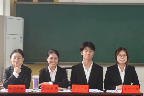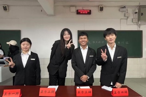 本轮辩题“社恐是真问题还是假问题”,持方反方,再战商公司,上场方梁鑫瑞、韩伊芮、吴钟卫、唐嘉琪。准备阶段,辩手们斗志昂扬,以最佳的状态投入到了比赛当中。基于对该辩题的充分准备,辩手们将其深入理解和全面思考演绎得淋漓尽致,顺利获得本场比赛的胜利,优秀辩手唐嘉琪的精彩结辩为本次比赛画上了一个圆满的句号。