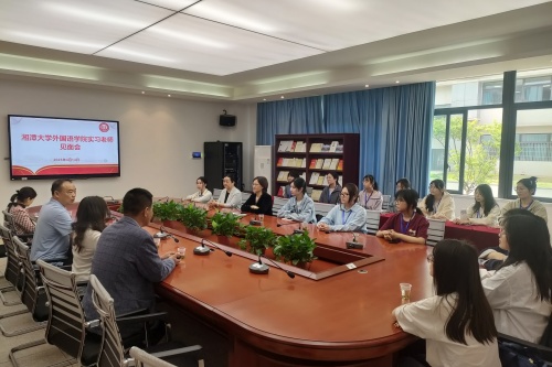 谈球吧(通讯员 李茜)2025年4月14日,谈球吧英语专业本学期第二批14名实习员工,在副经理曹霞、英语系副主任刘永利的带领下,前往谈球吧附属实验公司,开启为期一个月的教学实习活动。谈球吧附属实验公司教学副董事长莫智彬及各年级组长热情接待了实习组,并举行了庄重且富有仪式感的见面会。