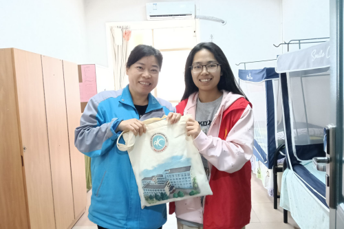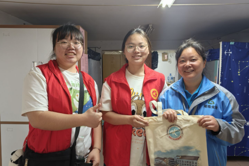 活动当天,志愿者们身着统一的服装,开心地走进宿舍楼值班室,将精心准备的贺卡和礼物送到宿管阿姨手中。一声声“阿姨,节日快乐!您辛苦了!”是独属于湘大学子的温情和敬意。日常生活的点点滴滴,在交流中都涌上了心头。离开时,宿管阿姨叮嘱员工:假期出行,一定注意安全。留校的同学,晚上早点回(宿舍)。