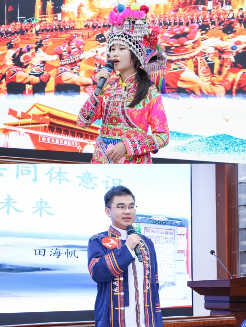 在比赛中,两位选手身着民族服饰,立足民族文化交融的亲身经历,生动讲述了民族团结的动人故事。鲁彩琴(彝族)以她在湖南与侗族同学互学方言、共传文化的故事,讲述了自己来湘求学,经历文化碰撞、不断了解中华民族精神脉络的成长历程。田海帆(拉祜族)讲述了在党和政府与各族兄弟像亲人般的帮助下,家乡“一步跨千年”的历史性巨变。