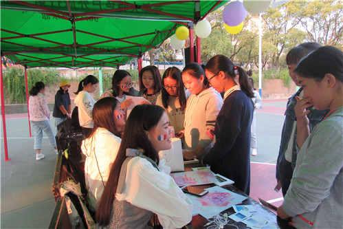 谈球吧宣传部 (记者 万萍)11月3日下午,一年一度的法国文化节在南苑球场顺利开展。此次法国文化节由17级法语班主办,活动主要以设置展台的形式向前来参观的人们展现丰富多彩的法国文化,促进中法文化之间的交流。本次活动以热情活泼的舞蹈开场,并邀请到器乐协会进行吉他弹唱,歌舞相伴,热闹非凡。此次文化节还准备了法语朗诵与法语合唱两个节目,营造出了浓郁的文化氛围。节目中,身穿旗袍的表演者结合中法两种语言朗诵诗歌,让观众直观的感受到了中法文化交融所散发的魅力;17级法语班准备的法语合唱,也让观众一饱耳福。此次法国文化节通过设立城市展台、游戏区、口语角和食品区四个区域来展示法国的特色文化。其中城市展台包括巴黎、图尔、马赛、布列塔尼、波尔多、斯特拉斯堡以及中国展台。同学们在各大展台间了解到有关法国化妆品、服装、红酒等的知识,参与体验了各色的游戏挑战,也收获了各式精美礼品。另外,中国展台上的各式剪纸、书法和精美的编制艺术品也引得同学们驻足观赏。伴随着最后一个抽奖环节的进行,法国文化节也接近尾声。此次活动展示了法国别样的风俗民情,也让同学们感受到了不一样的法国文化魅力和浪漫情怀。