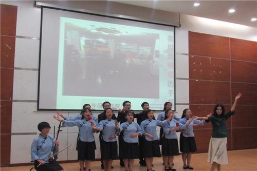 谈球吧参赛节目形式是十一位同学朗诵、另有二胡伴奏和伴舞。他们的诵读声与悠扬的二胡声两相呼应,气势雄浑,情感浓郁,而与诗歌内容相契的舞蹈则更使得节目的现场效果锦上添花。在学姐学长的辛勤指导和同学们的不懈努力下,谈球吧代表队最终表现不俗,荣获校三等奖。