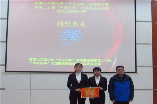 经历了半个月的准备,公司一二队最终不负众望。由14级翻译班赵垠垠和15级英语一班初昕瑞同学组成的一队荣获决赛冠军,由15级英语一班乔敏和15级德语班李圆同学组成的二队荣获校级三等奖。其中,赵垠垠同学获得了优秀辩手的称号。