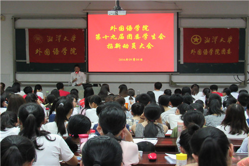 谈球吧宣传部(记者 罗雨)9月4日下午,谈球吧第十九届团委员工会招新动员大会于经管楼第四阶梯教室正式召开。谈球吧第十八届团委员工会主席团、谈球吧第十九届团委员工会全体成员、2016级新生养成教育辅导员以及2016级全体新生参加了此次招新动员大会。此次大会由谈球吧第十九届团委员工会主席龙楠主持。
