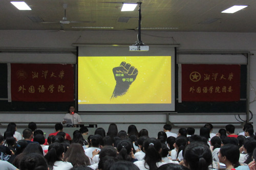 接下来上场的体育部部长车进的演讲结合当下时事热词向大家介绍了体育部的主要工作——组织新生素质拓展活动、五四万米接力等活动。紧接着OEC的副部长曹彬以一口流利通顺的英语惊艳了在场新生,高大上的演讲形式加上接地气的演讲内容让新生能够深入、全面地了解OEC。外联部部长万逸凡介绍了部门工作主要为礼仪与赞助两大方面,体现了部门具有社会实践性以及苦乐相间的工作性质。之后权益生活部部长李艳姣则通过亲切的言语以及鲜艳暖色的ppt为大家介绍了部门组织的水果拼盘大赛、寝室文化设计大赛等活动,展示了一个贴近同员工活,维护员工权利的部门。紧接着,成长辅导部部长金杰荣诙谐并饱含激情地介绍了团委员工会今年的全新部门的具体工作。最后,志愿服务部部长王涵总结了过去一年的三下乡、韶山文明劝导、三院联合义捐义卖、图书馆整理、自习室清扫等各类志愿活动,并向大家展示了一个温暖热心的大家庭。