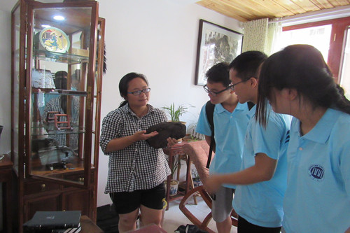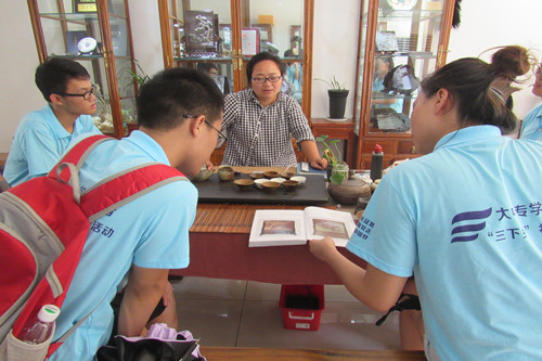 (图片二:张小花老师为实践团展示石雕文化文史资料)