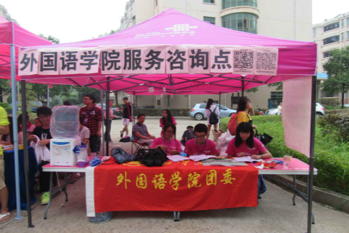 早晨7点不到,摆点处就出现了志愿者们忙碌的身影:搭帐篷、摆桌椅、贴海报,每个人都认真地布置着迎新场地。8点左右,新生们陆陆续续进入了校园。上午10点,谈球吧学工办蒋孟昕老师来到琴湖指导迎新志愿者的工作。志愿者们一张张热情的笑脸,一句句亲切的问候,一项项贴心的服务,欢迎着来自祖国各地的莘莘学子。迎新工作如火如荼,到处都是忙碌的身影。