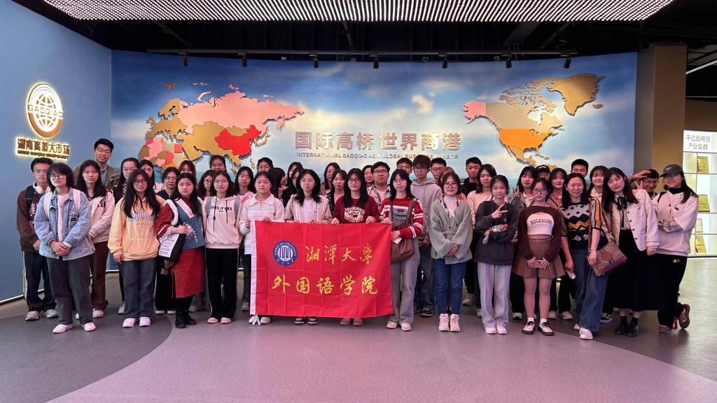 在出口产品集聚区特色馆,同学们了解到,随着中国(湖南)自由贸易试验区获批和湖南“三高四新”战略的实施,湘绣、陶瓷、黑茶等湖南各地的特色产品正通过多种渠道走向世界,商品出海需要推广助力,湖南的外语人才有了更加广阔的用武之地。