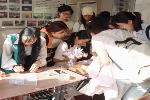 在“花语润心”赠花活动中,由同学们制作的一朵朵写满多语祝福的纸艺花,经院员工会成长辅导部志愿者的包装后,赠予至每一位参加活动的同学手中。怀揣着欣喜与期待,同学们展开了各自手中的纸艺花,认真品读花中的温暖祝福。