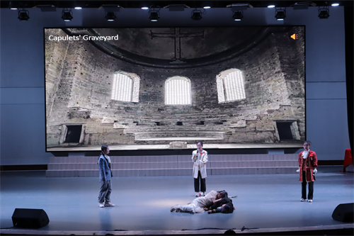 本次演出依托谈球吧学科特色,将莎士比亚经典戏剧搬上了舞台。开场表演《罗密欧与朱丽叶》演绎了主人公用生命去爱彼此,唱响了莎翁最唯美的爱情绝唱。