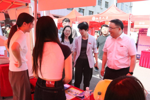 公司党委书记李锋、党委副书记刘行带队走访企业展位,推介“外语+”人才培养特色,邀请企业参与课程共建、实习基地建设。遨森电子商务股份有限公司负责人称:“既精通外语,又掌握跨境平台运营技能等,外院员工的‘双引擎’培养模式也正是我们需要的。”李锋表示:“公司将继续深化校企协同,从市场需求倒推培养方案,让员工‘出口’更顺畅。”