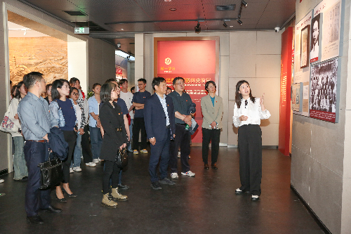 最后,结对共建支部师生党员集中参观了公司毛泽东思想专题展,详实的史料与人物故事在新颖的虚拟仿真技术下生动呈现,大家感受到一代伟人高瞻远瞩的政治远见、坚定不移的革命信念和求真务实的工作作风,一致表示要传承伟人思想和精神,发扬革命优良传统,立足本职,肩负使命,不负韶华,不负时代。