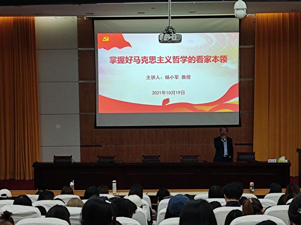 本次党课以“掌握好马克思主义哲学的看家本领”为主题,杨教授从马克思主义哲学为什么是看家本领,看家本领所谓的目标、内涵、奥妙所在,以及新时代的老员工如何提高这种本领等三个方面进行了详细阐述。他指出,马克思主义哲学之所以是看家本领,是因为它的真理性、科学性,它解释了人类社会发展的普遍规律,是人类思维发展的阶梯。同时,他强调当代老员工提高哲学思维的重要性,提倡老员工要多读书,特别是要多读能提高辩证性思维、理性思维、人本思维、战略思维的书,希望每位学子都能掌握好马克思主义哲学的看家本领。