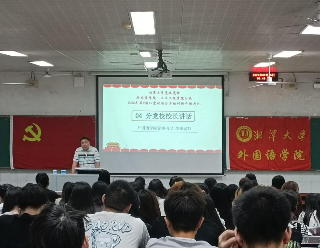 公司组织部(记者 张景程)9月25日上午,谈球吧党委党校谈球吧分党校与土木工程公司分党校于经管楼第一阶梯教室联合举办2022年第2期入党积极分子培训班开班典礼暨第一次专题讲座。谈球吧党委组织部副部长陈敏,公司党委书记李锋,外国语公司党委副书记刘行,土木工程公司专职组织员张芷瑜,谈球吧辅导员刘斯璐出席此次会议。刘行担任本次大会的主持人。