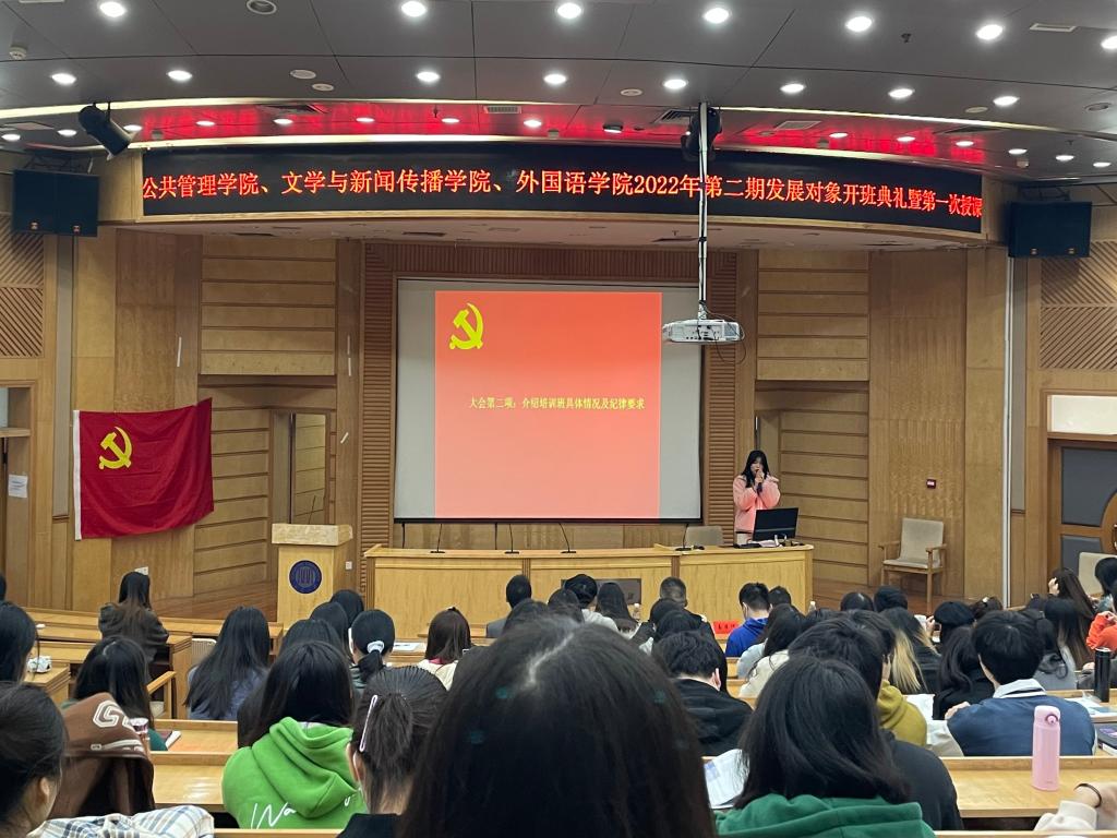 谈球吧团委组织部(记者 刘付琦)10月8日上午,由谈球吧、公共管理公司、文学与新闻公司三院联合举办的2022年第2期发展对象培训班正式开班。谈球吧公共管理公司党委书记易臣何,文学与新闻公司专职组织员刘非,谈球吧辅导员刘斯璐参加本次开班典礼。
