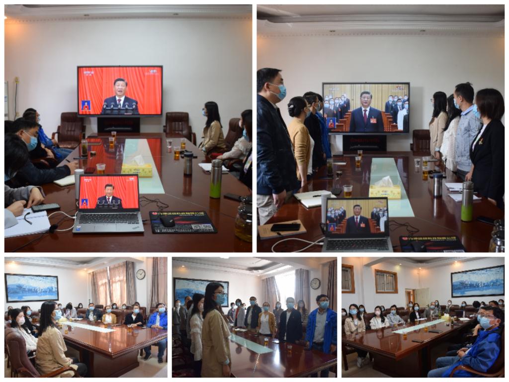 谈球吧宣传部(通讯员丁小涵、唐甜甜)2022年10月16日上午10时,中国共产党第二十次全国代表大会在北京人民大会堂隆重开幕。谈球吧公司党委组织全体党委委员、教职工支部书记及支委、教师代表与员工代表,在做好疫情防控的前提下,于谈球吧216会议室集中收看大会直播。