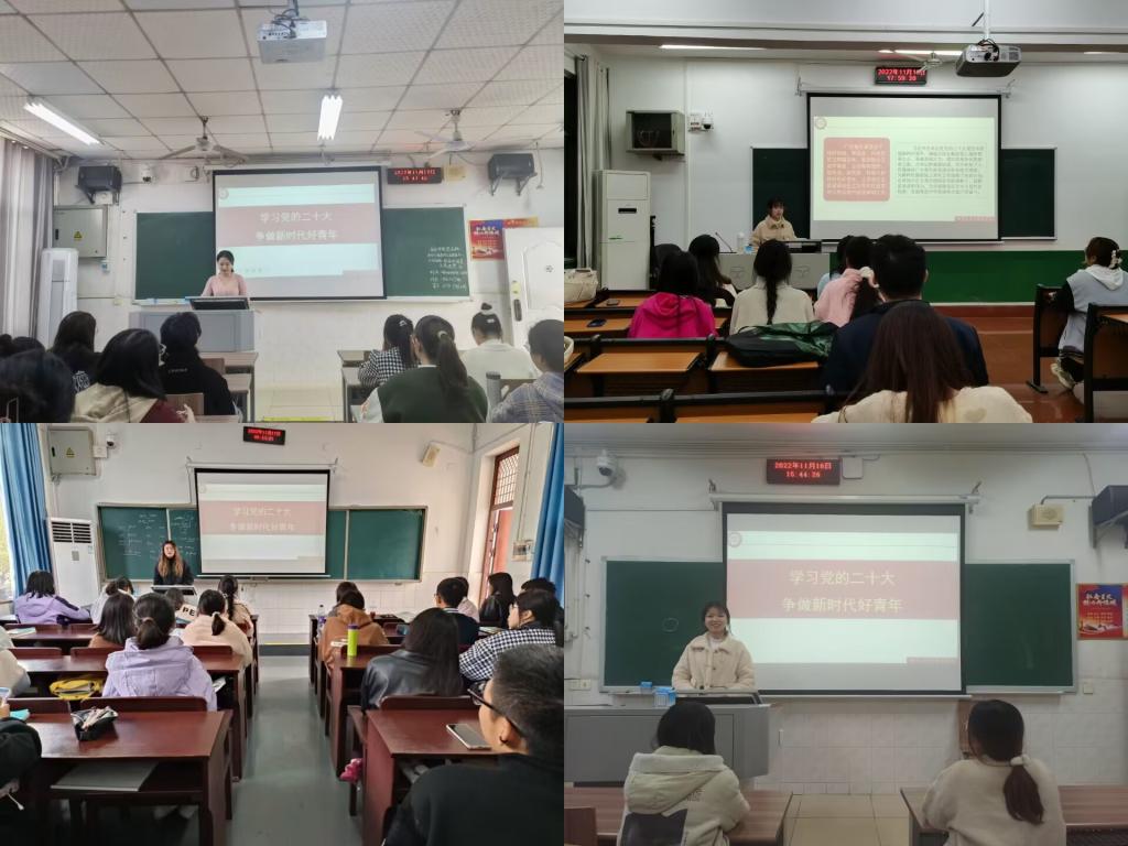 为深入学习宣传贯彻党的二十大精神, 2022年11月16日至19日,谈球吧本科生第二党支部组织支部全体党员开展“党的二十大精神进班级”宣讲活动。