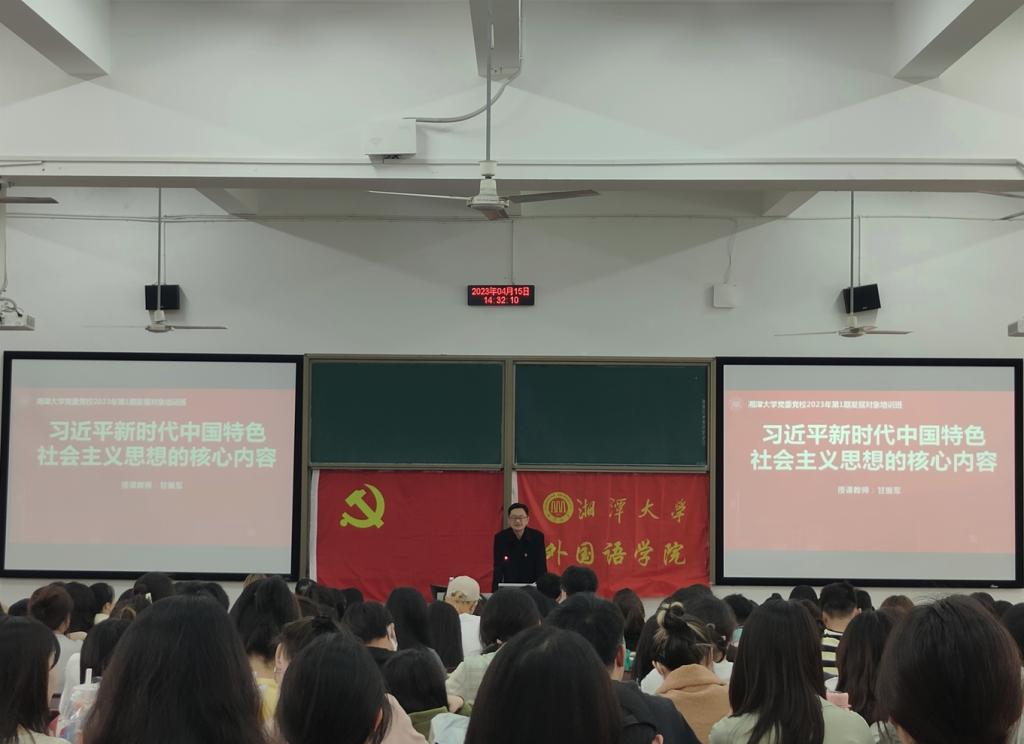 谈球吧团委组织部(记者 钟清芳)4月15日下午,由谈球吧、碧泉书院·哲学与历史文化公司、公共管理公司、文学与新闻公司四院联合举办的2023年第1期发展对象培训班第三次专题讲座于逸夫楼第二阶梯教室举行。谈球吧马克思主义公司专职教师、政治学硕士生导师甘振军为全体学员授课。