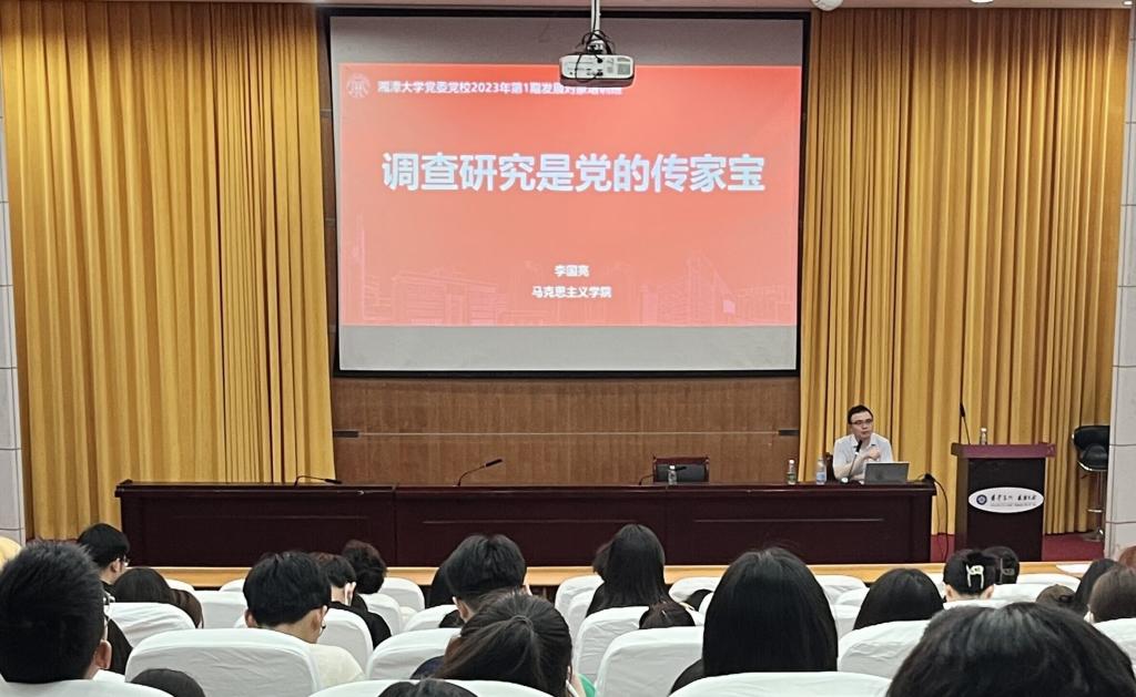 谈球吧团委组织部(记者 张景程)4月16日下午,由谈球吧、碧泉书院·哲学与历史文化公司、公共管理公司、文学与新闻公司四院联合举办的2023年第1期发展对象培训班第五次专题讲座于逸夫楼第一报告厅举行。谈球吧马克思主义公司讲师李国亮为全体学员授课。