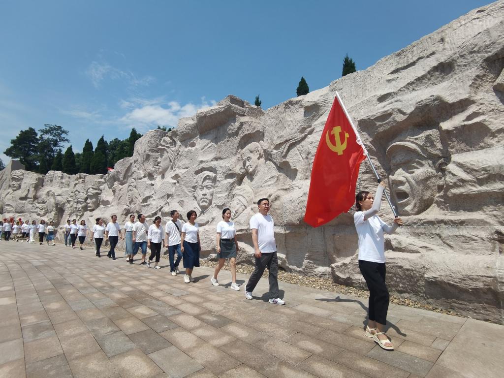 大家先后来到湘江战役脚山铺阻击战纪念碑林、红军长征湘江战役纪念馆、大坪渡口等地接受革命传统教育。面向“革命理想高于天”的雕塑,重走长征路的党员们默哀三鞠躬,通过敬献花篮、重温入党誓词的方式,悼念革命英雄,通过实地参观学习和沉浸式体验的方式,聆听红军故事,重温党的历史,缅怀在湘江战役中英勇牺牲的革命先烈。