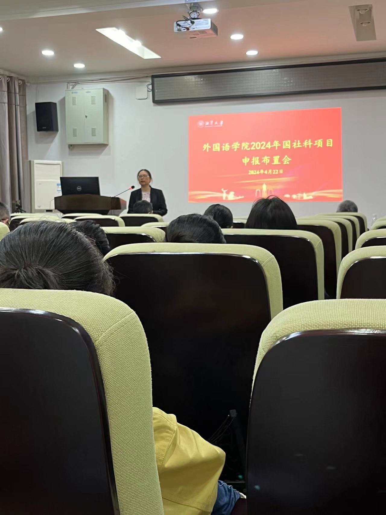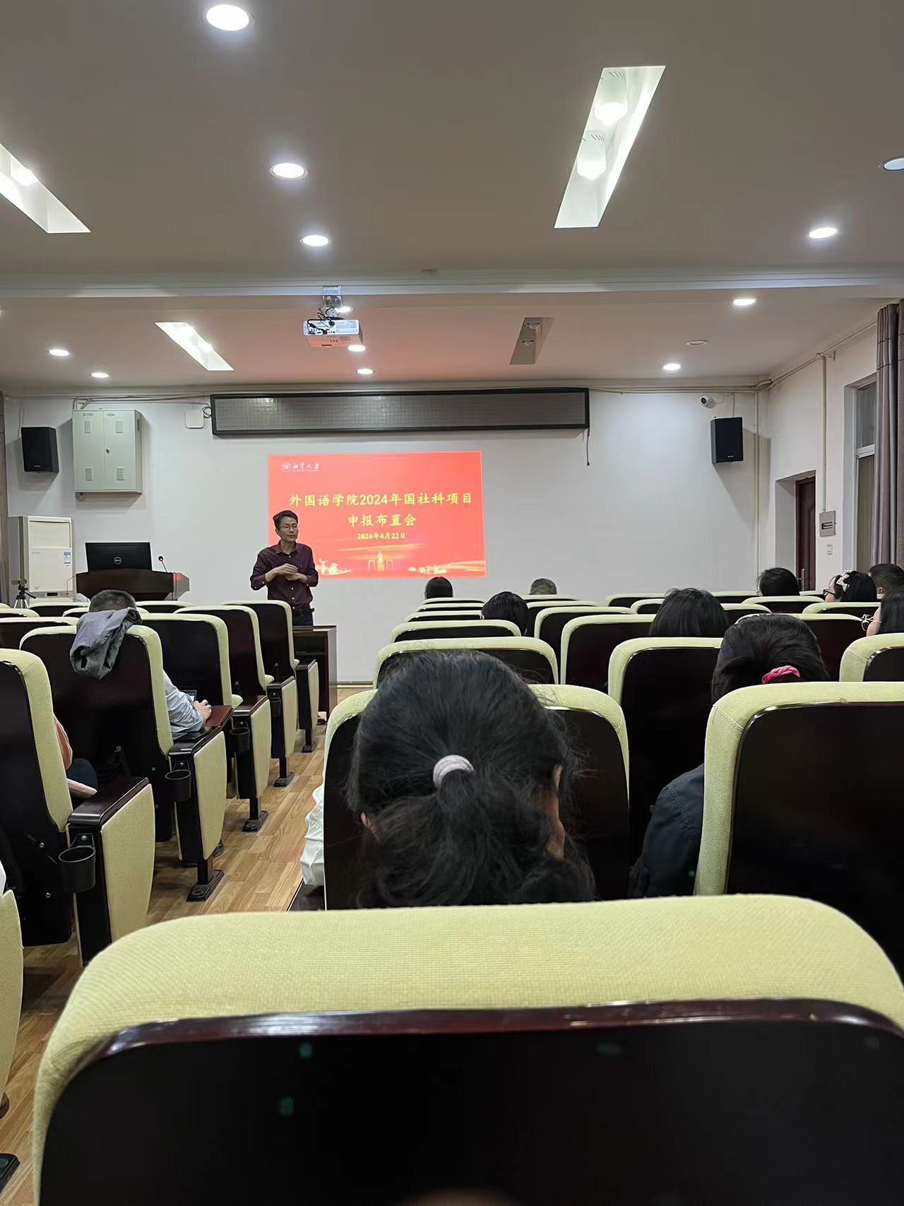 为切实做好2024年度国家社科基金项目申报工作,提高公司老师国家社科基金项目申报质量,公司于2024年4月22日晚在外语楼305召开了 2024年度国家社科基金项目申报工作布置会。经理舒奇志、科研副经理杨维春及申报项目的老师们参加了此次会议。