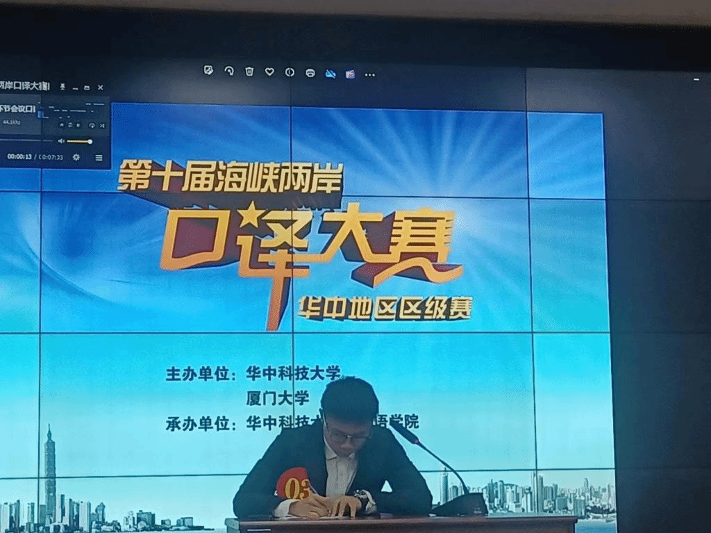 2024年10月20日,谈球吧英语系2021级员工熊哲(指导老师:侯晟)获得第十届“海峡两岸”口译大赛华中赛区总决赛特等奖,成功晋级,并将参加在香港中文大学(深圳)举办的大陆赛区总决赛。